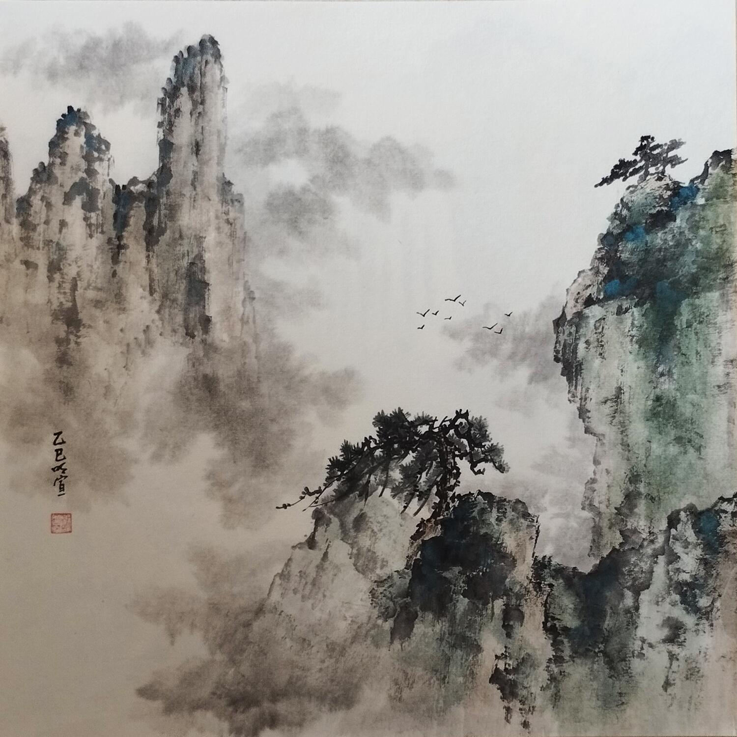 This unique and original contemporary artwork "Cloudy mountains" was created by contemporary artist Du Mingxuan.