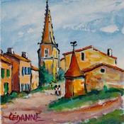 This unique and original contemporary artwork "Une après-midi dans le village" on the subjects of Landscapes, Urban, Life style has been created by the contemporary artist Cédanne.