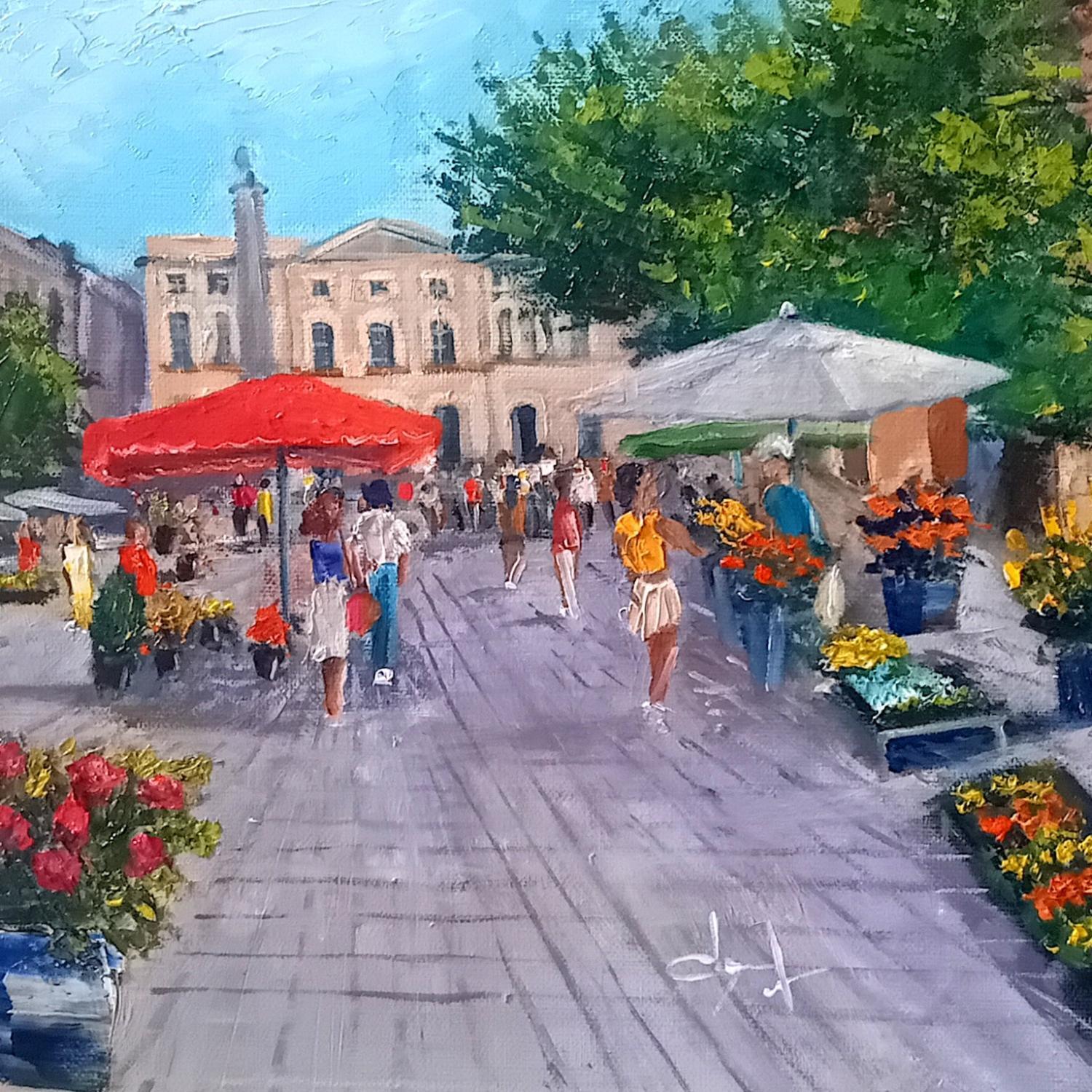 This unique and original contemporary artwork "Ce matin on va au marché à Aix " on the subject of Landscapes has been created by the contemporary artist Degabriel Véronique.