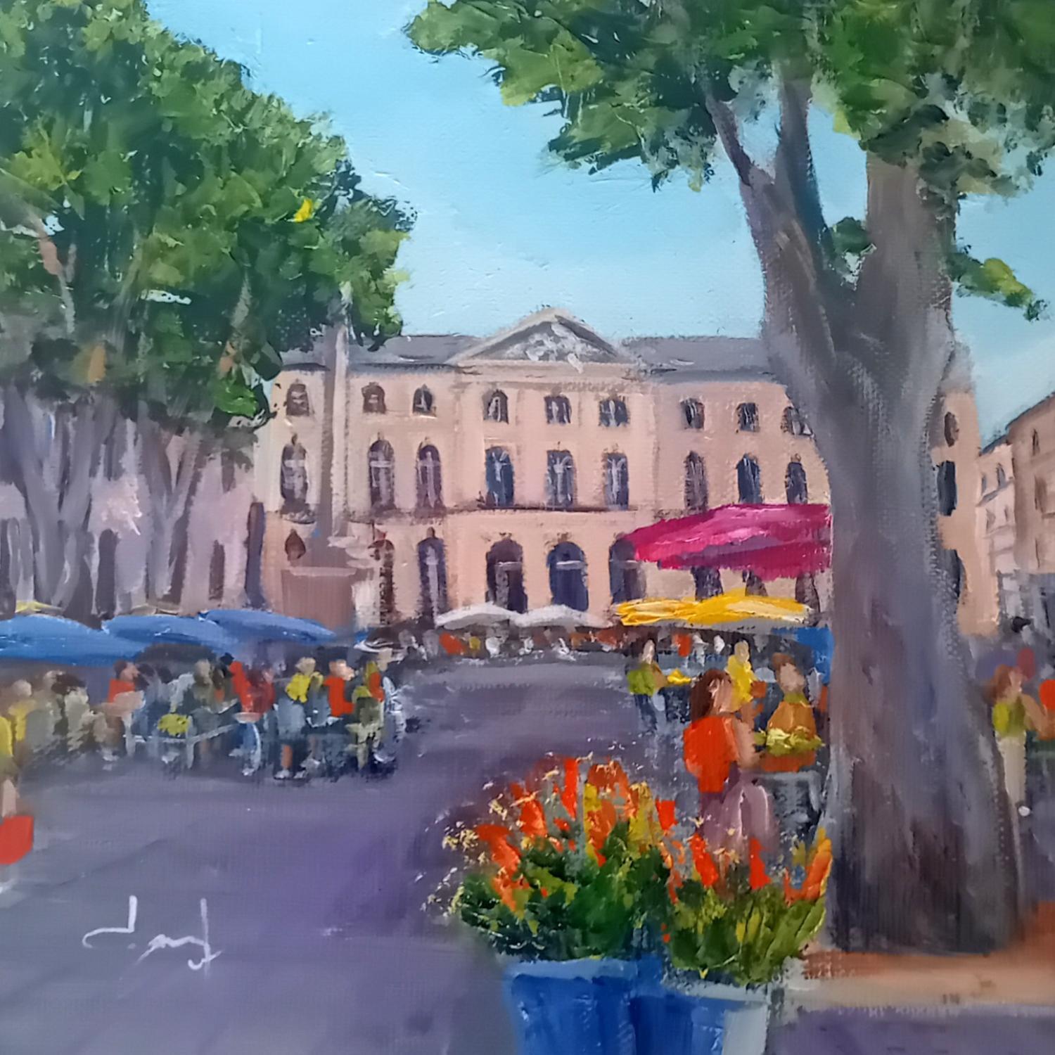 This unique and original contemporary artwork "Marché aux fleurs à Aix " on the subject of Landscapes has been created by the contemporary artist Degabriel Véronique.