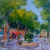 Véronique Degabriel, a self-taught painter, has lived in the Luberon for over 40 years. Born on Reunion Island, she draws her inspiration from the luminous, colorful nature of her surroundings. After a career unrelated to art, she has devoted her retirement to her passion for painting, exhibiting her work through Carré d'Artistes for the past two years. Her paintings are characterized by vivid color contrasts, highlighting the remarkable features of Provencal landscapes and emblematic monuments.