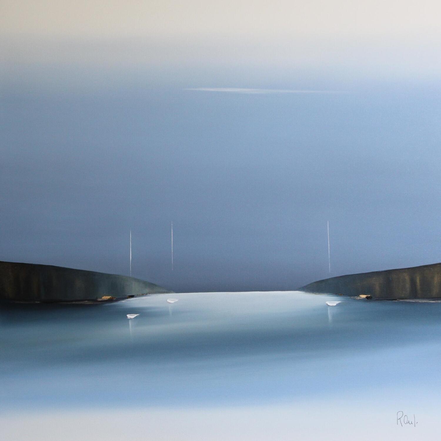 This unique and original contemporary artwork "Invitation à la sérénité 83" on the subjects of Marine, Minimalist has been created by the contemporary artist Roussel Marie-Ange et Fanny.