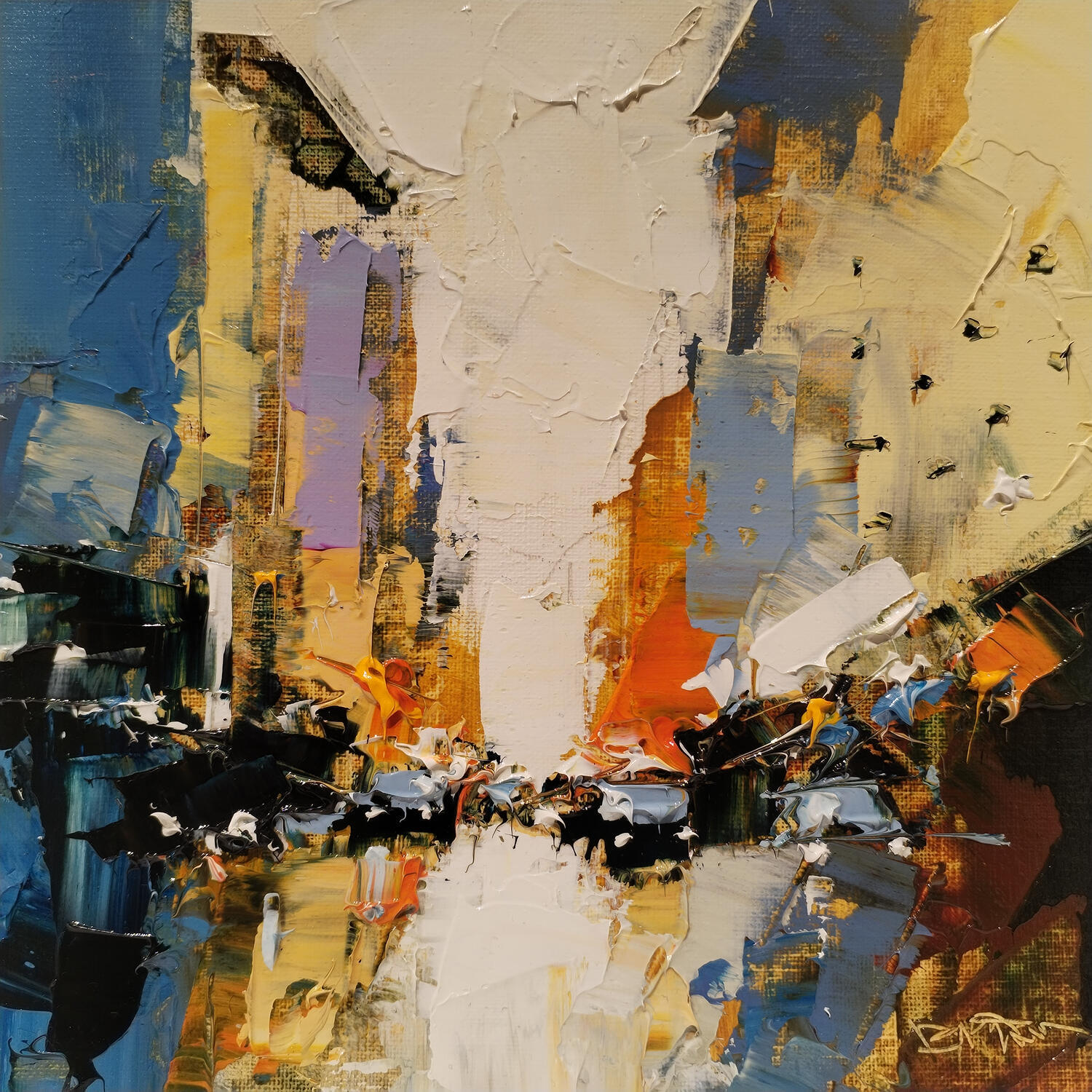 Daniel Castan has conserved his working discipline, a taste for urgent situations and a passion for megalopolises from his first career path as a graphic designer. It was during this time that Daniel travelled extensively in New York and Hong Kong and developed a fascination with the urban world and its larger-than-life perspectives, and now he recreates these graphic ambiances in his painting. A graduate in fine arts, he finally decided in his forties to satisfy his need to create. Not worrying about useless reflections, Daniel Castan maintains a relationship marked by physicality in his paintings. His perspective is one of a distance runner who trains for many hours a day and obstinately moves forward. Only colour and the material count for him and he effectively maintains a power relationship with the canvas: he never waits for an illusionary inspiration, his works are born out of work and perseverance.