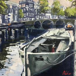Painting Boats near the bridge by Niko Marina  | Painting Figurative Urban Oil
