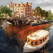 This unique and original contemporary artwork "On the boat" on the subject of Urban has been created by the contemporary artist Niko Marina .
