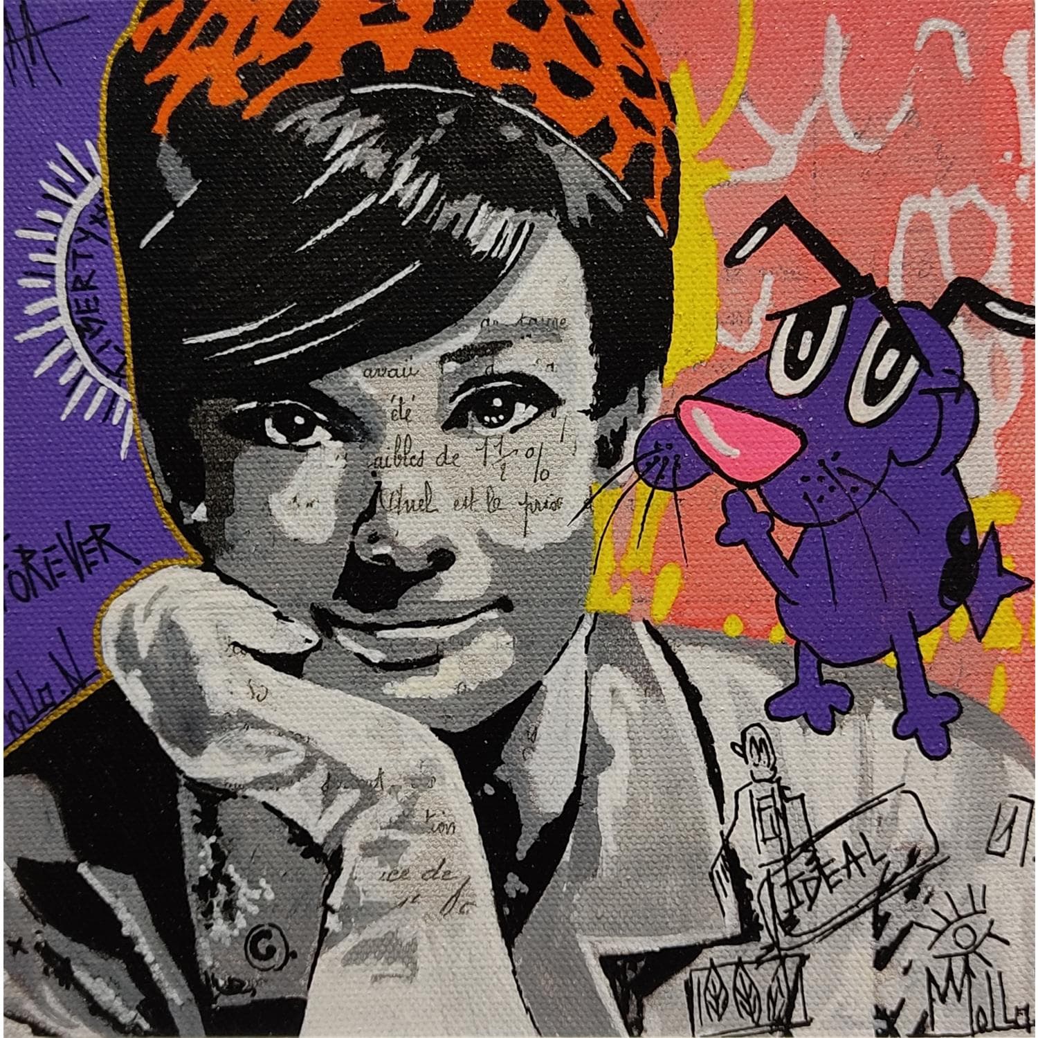 This unique and original contemporary artwork "Audrey" on the subject of Pop icons has been created by the contemporary artist Molla Nathalie .