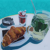This unique and original contemporary artwork "Depuis quand buvait-on dans un bocal à cornichons" on the subject of Still-life has been created by the contemporary artist Auriol Philippe.