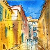 Painting Streets of Saint-Tropez by Volynskih Mariya  | Painting Figurative Landscapes Urban Architecture Watercolor