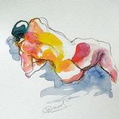Méline couchéePainting Méline couchée by Brunel Sébastien | Painting Figurative Nude Watercolor