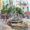 Painting La fontaine  by Hoffmann Elisabeth | Painting Figurative Urban Watercolor