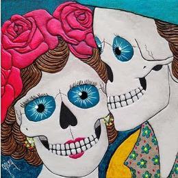 This unique and original contemporary artwork "F2 kisses my love" was created by the contemporary artist Geiry. The artist used the Mixed media technique to create this small format painting on wood in a Pop Art figurative style.