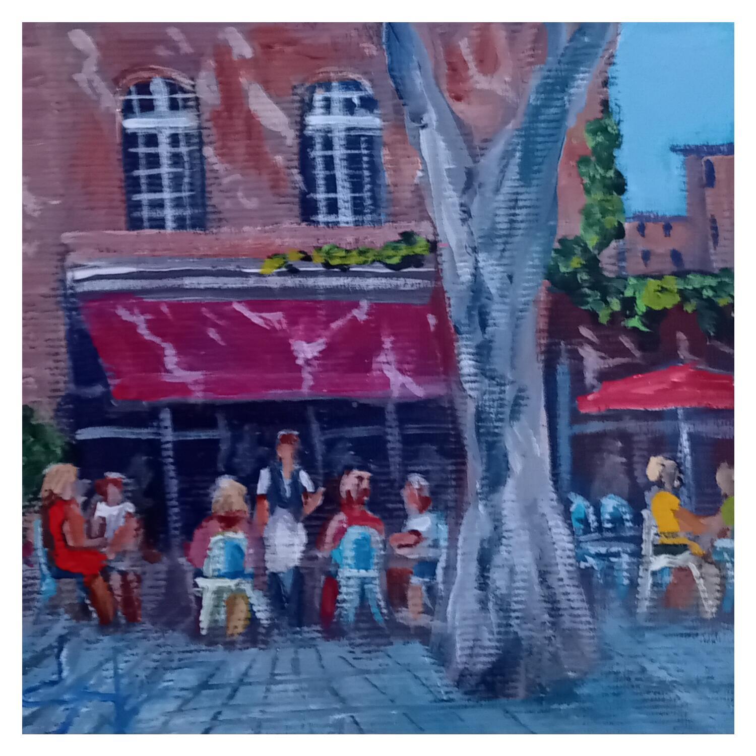 This unique and original contemporary artwork "Pause midi place de l'archevêché à Aix en Provence" on the subjects of Landscapes, Life style, Urban has been created by the contemporary artist Degabriel Véronique.