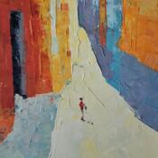 This unique and original contemporary artwork "Vaig cap a casa" on the subjects of Life style, Society, Urban has been created by the contemporary artist Tomàs.