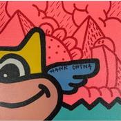 The artist used Acrylic, Posca media on Canvas to create this Pop-art, Small size painting.