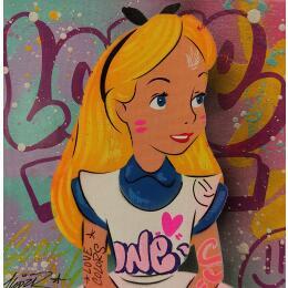 This unique and original contemporary artwork "Alice" on the subject of Pop icons has been created by the contemporary artist Lemoine Mael.