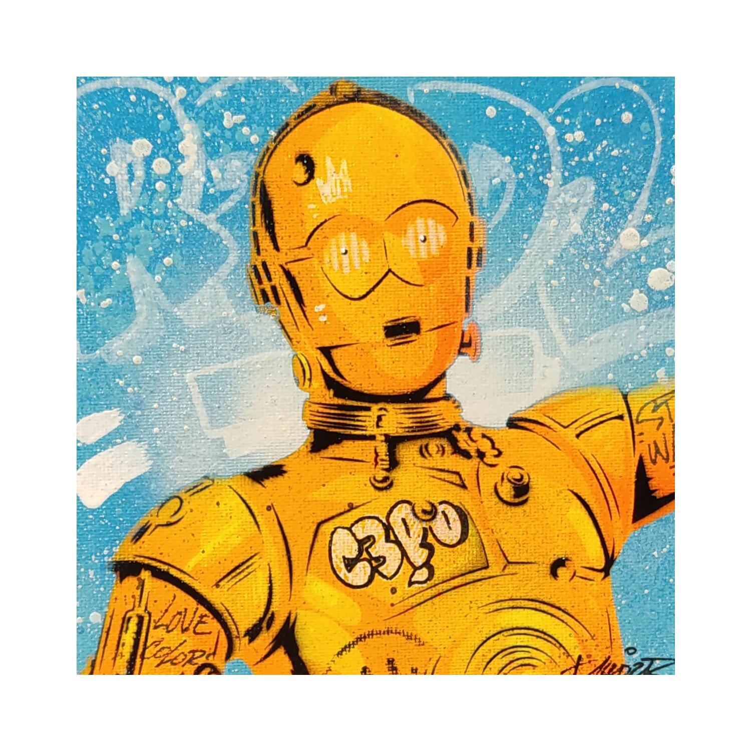 This unique and original contemporary artwork "c3pO" on the subject of Pop icons has been created by the contemporary artist Lemoine Mael.