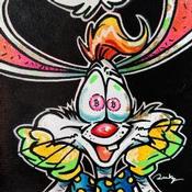 This unique and original contemporary artwork "Bit Bunny " on the subject of Pop icons has been created by the contemporary artist Rocky Chaplin.