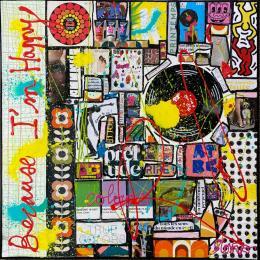 The artist used Acrylic, Gluing, Upcycling media on Canvas to create this Pop-art, Large size painting.
