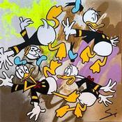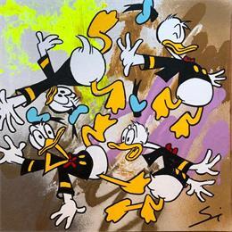 This unique and original contemporary artwork "crazy donald" on the subject of Pop icons has been created by the contemporary artist Mestres Sergi.