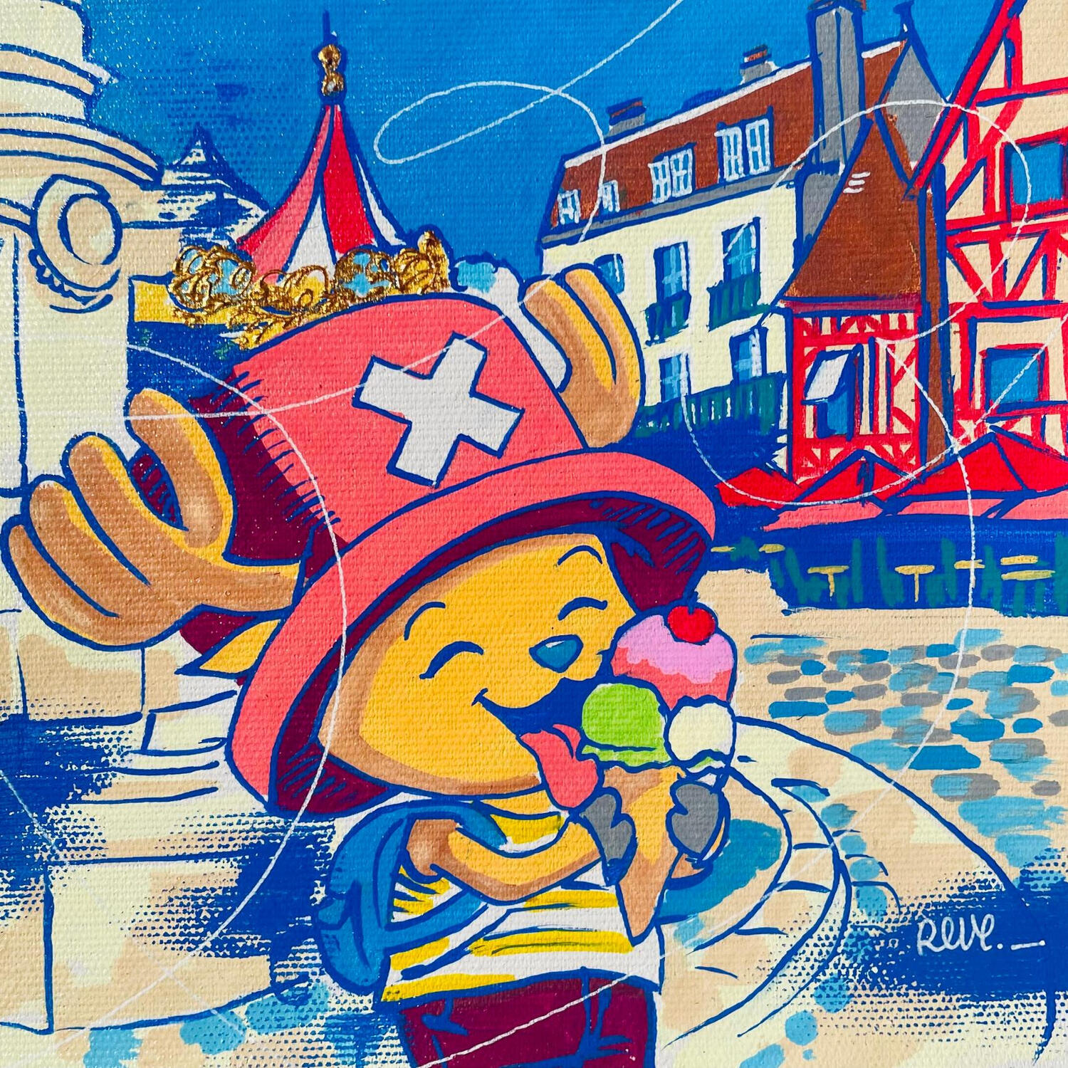This unique and original contemporary artwork "Chopper à Dijon" on the subject of Pop icons has been created by the contemporary artist Revel.
