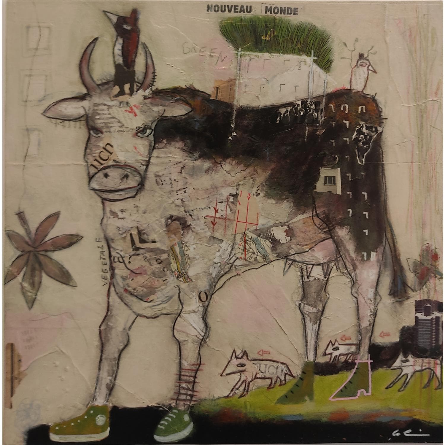 This unique and original contemporary artwork "Nouveau monde vert" on the subject of Animals has been created by the contemporary artist Colin Sylvie.
