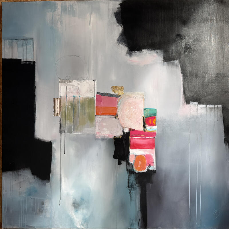 The artist used Acrylic, Cardboard, Gluing, Gold leaf, Pastel media to create this Abstract, Large size painting.