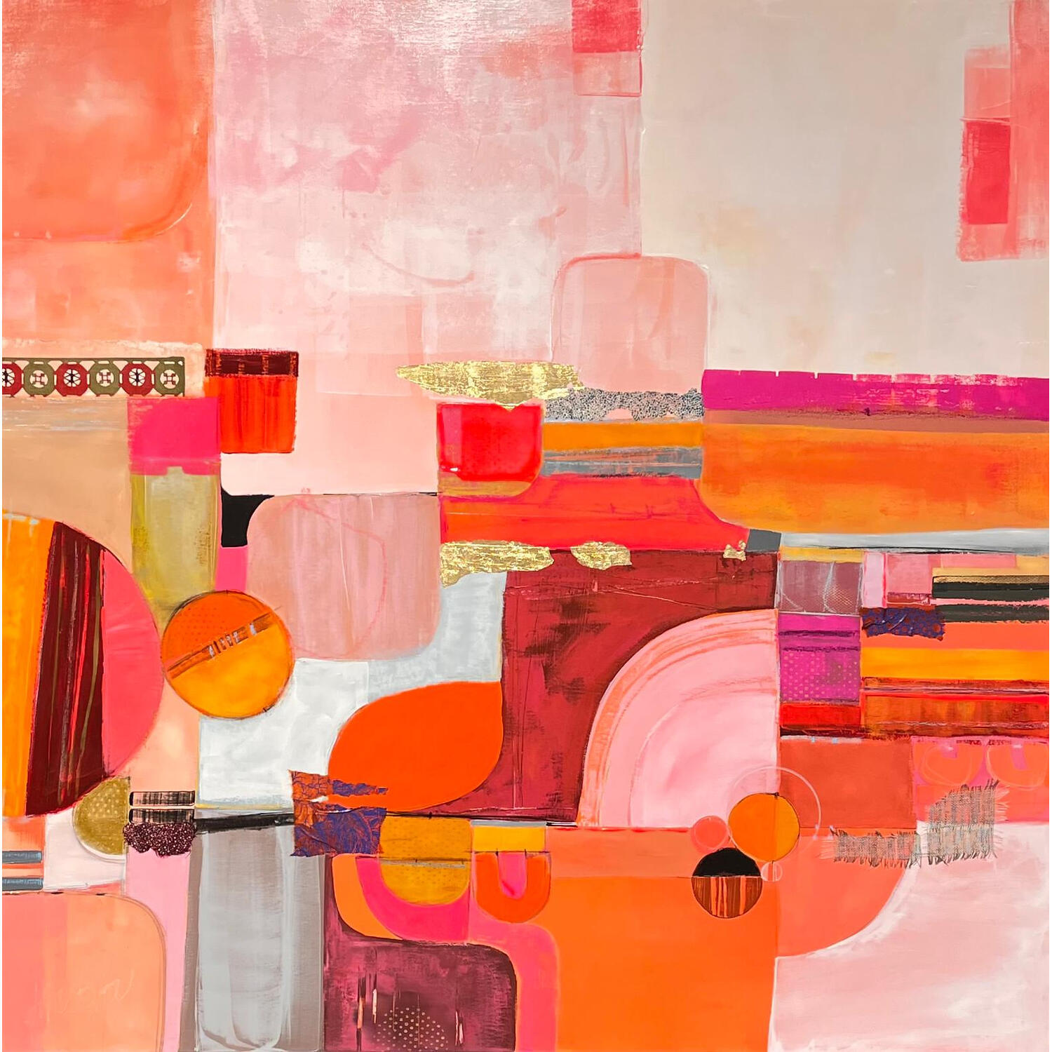 The artist used Acrylic, Cardboard, Gluing, Gold leaf, Pastel media to create this Abstract, Large size painting.