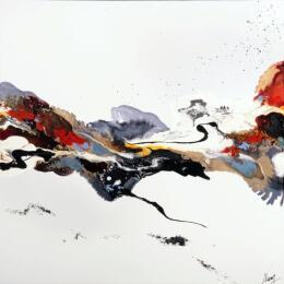 The artist used Acrylic, Ink media on Other to create this Abstract, Small size painting.