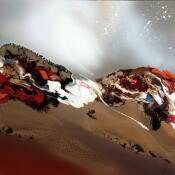 The artist used Acrylic, Ink media on Other to create this Abstract, Small size painting.