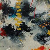 The artist used Acrylic, Charcoal media on Canvas to create this Abstract, Small size painting.