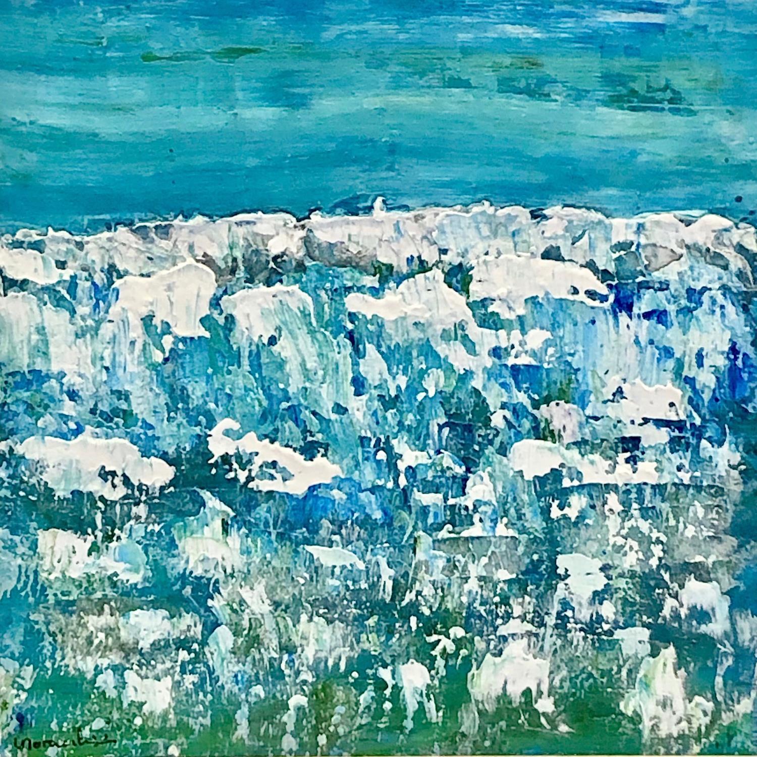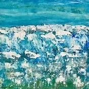 The artist used the Mixed media technique (acrylic and marble powder) to create this small format painting on thick paper in the Figurative-Abstract style on the theme of Marine Views.