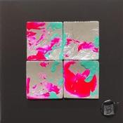 The artist used Silver leaf, Gluing, Wood, Acrylic, Resin media on Dibon to create this Abstract, Small size painting.