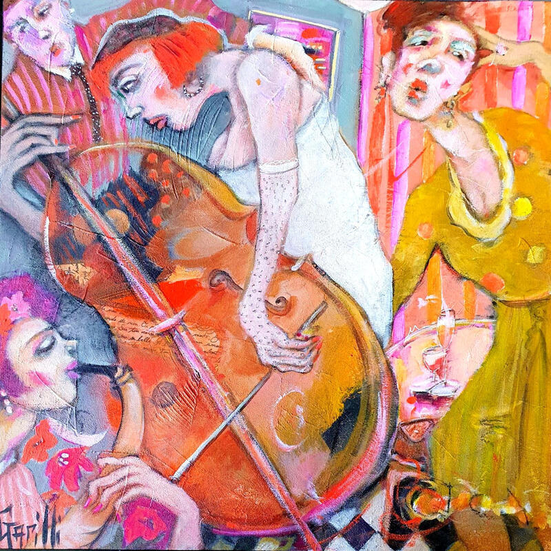 This unique and original contemporary artwork "Jazz endiablé." on the subject of Life style has been created by the contemporary artist Garilli Nicole.
