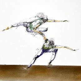 This unique and original contemporary artwork "Jean et Marc" was created by contemporary artist Sahuc François while attending a rehearsal session of a contemporary dance company.