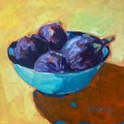 This unique and original contemporary artwork "figs in a blue bowl" was created by contemporary artist Morales Géraldine.