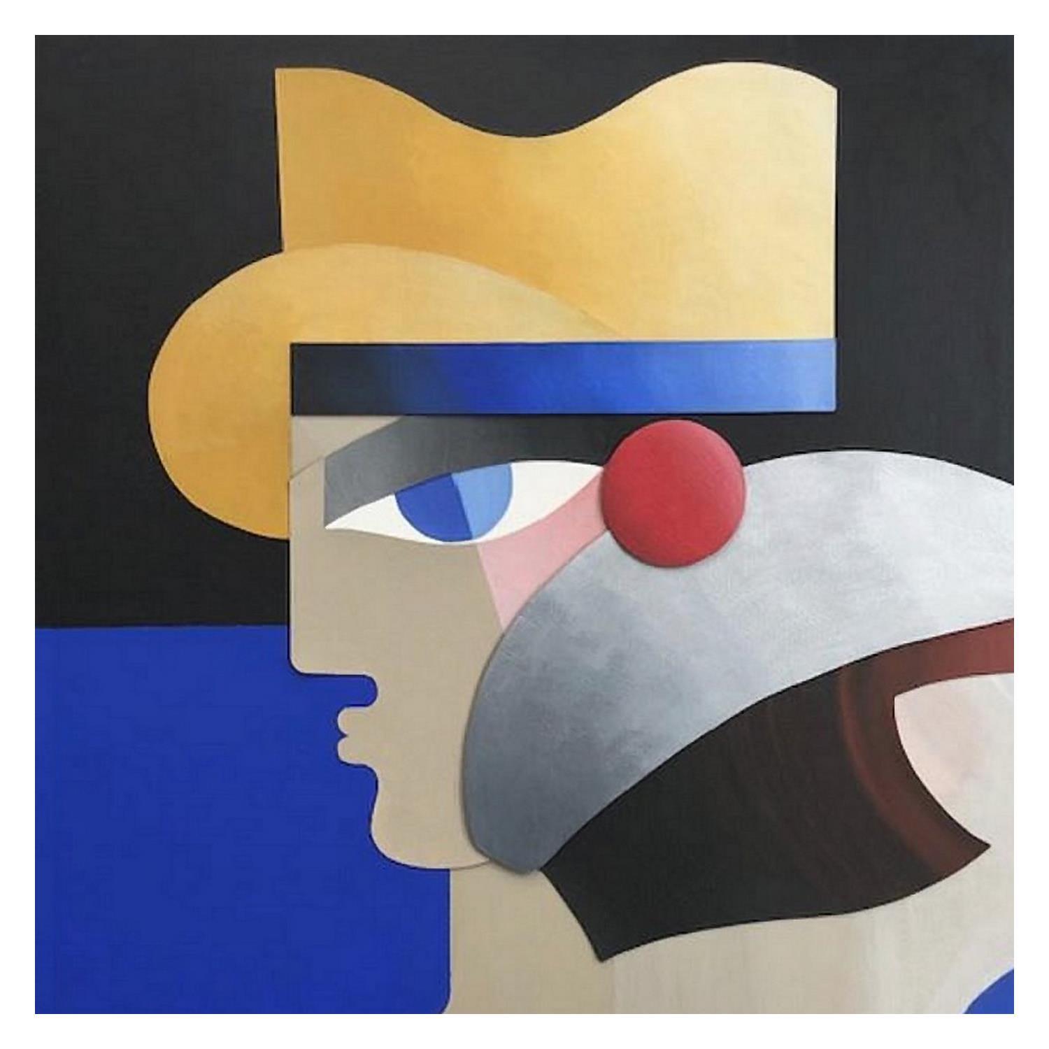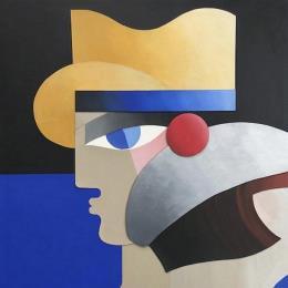 The artist used Acrylic, Gluing media on Canvas to create this Figurative, Large size painting.