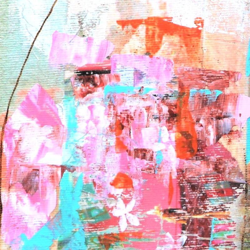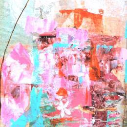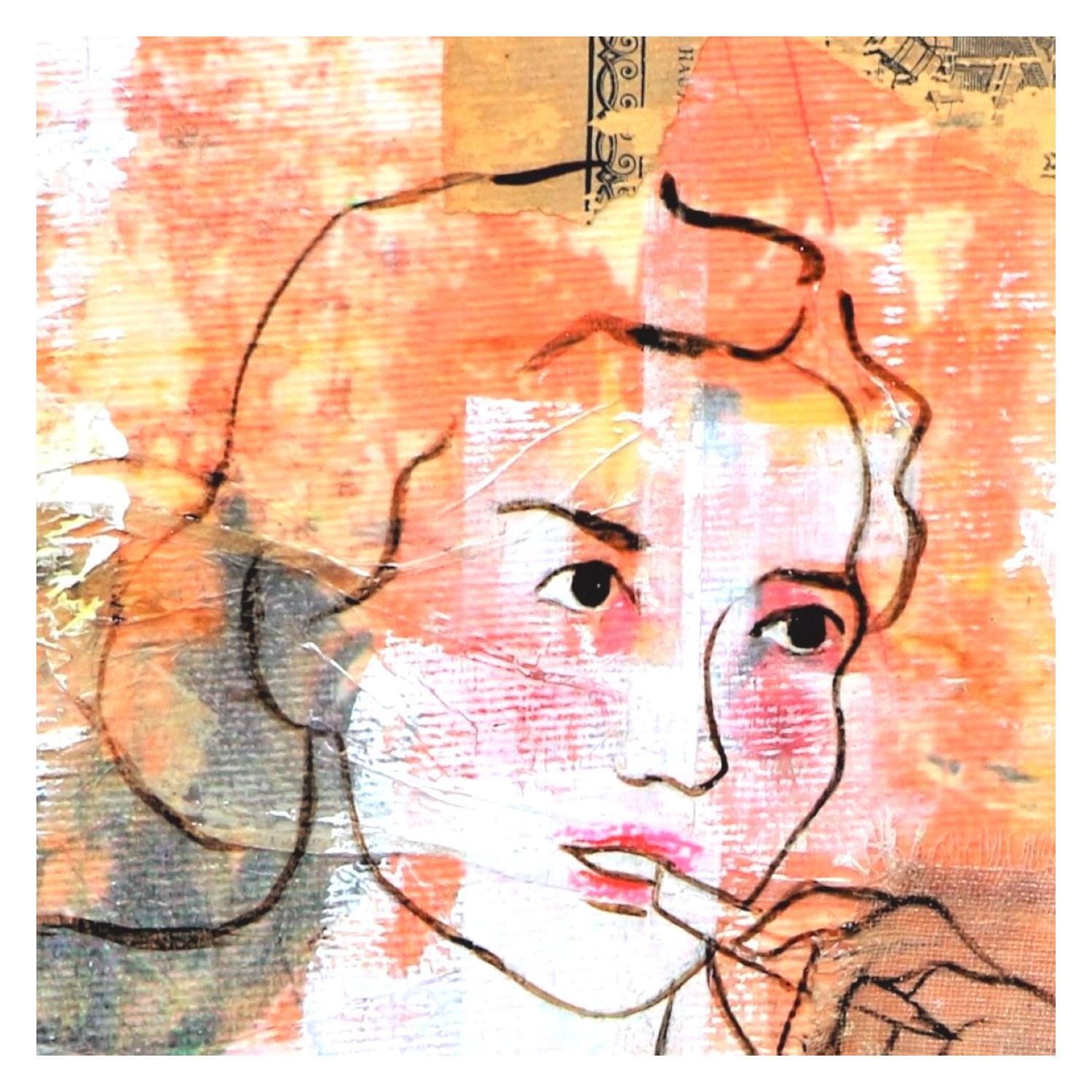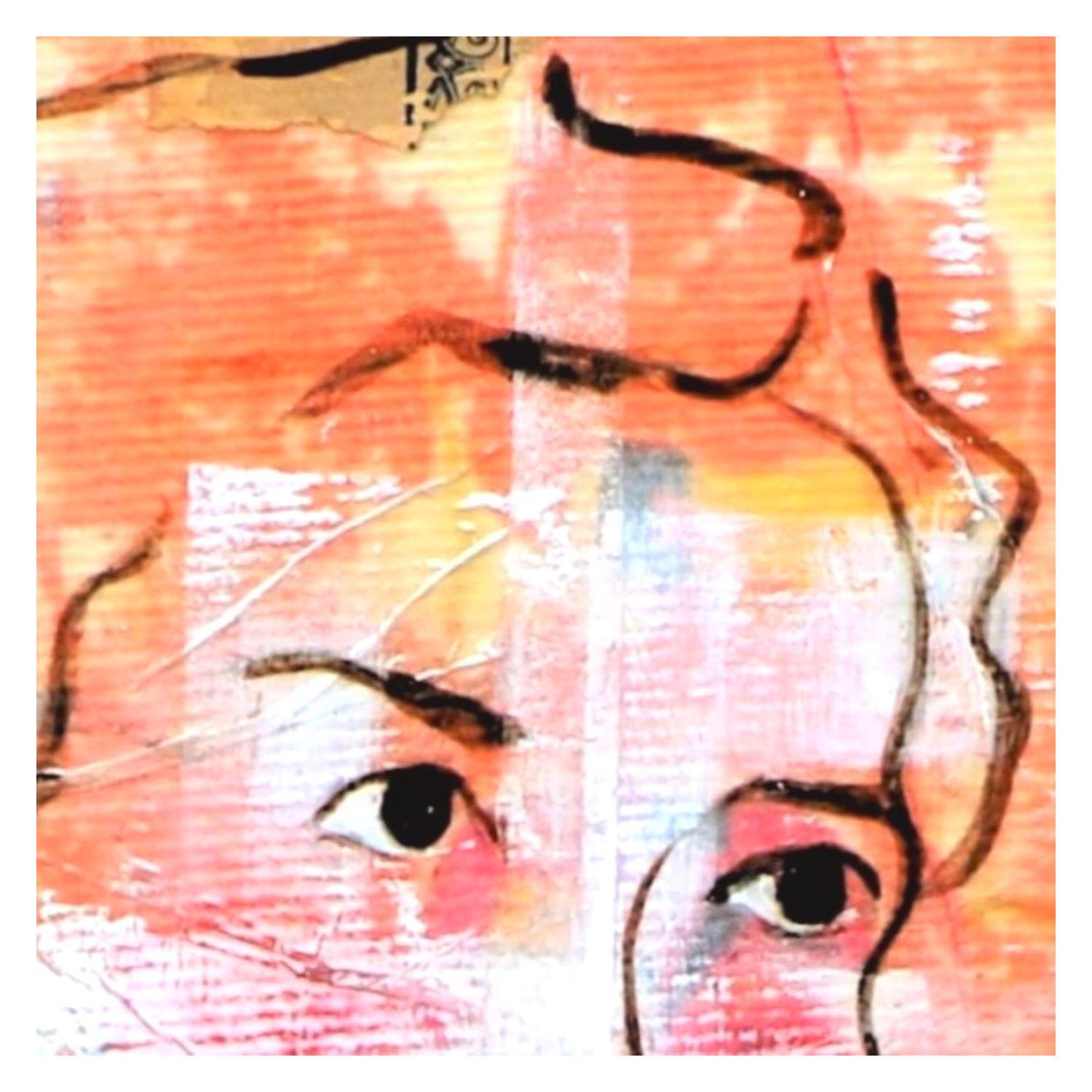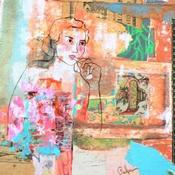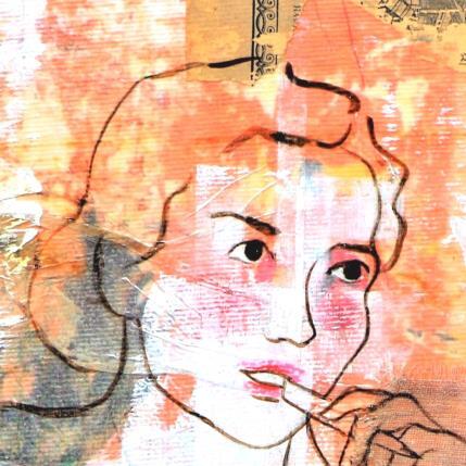 The artist used Acrylic, Wood, Cardboard, Gluing, Ink, Gold leaf, Graffiti, Paper, Pastel, Pigments, Upcycling media on Canvas to create this Figurative, Small size painting.