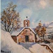 This unique and original contemporary artwork "Chapelle Auris en Oisans" on the subject of Urban has been created by the contemporary artist Lallemand Yves.