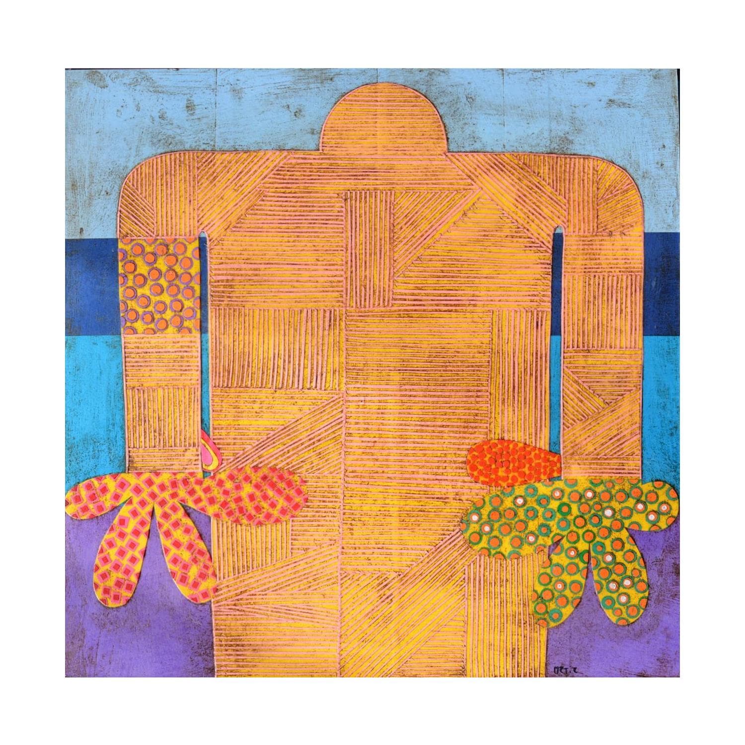 Gustavo spent his childhood in Realico, a small town lost in the Argentine Pampas. Besides the artistic activities experienced in his neighbourhood, an encounter with art would amaze and influence him; during a school trip to Buenos Aires, he attended a retrospective of the surrealist artist Joan Miró. At 17, he moved to General Pico for his studies. At the time he hesitated between art and veterinarian studies, but quickly his instinct led him to choose an artistic path. He completed classical training for 5 years at the university and acquired a solid foundation in art history and philosophy and experimented with different techniques. At 21 he moved to Chili and opened a studio in Santiago de Chile. For seven years he expressed his desire to create on his canvases and began to make a living from his work. Gustavo interweaves his South American origins and his intellectual attraction for Europe to create a unique universe; a harmony between indigenous and colonial art.