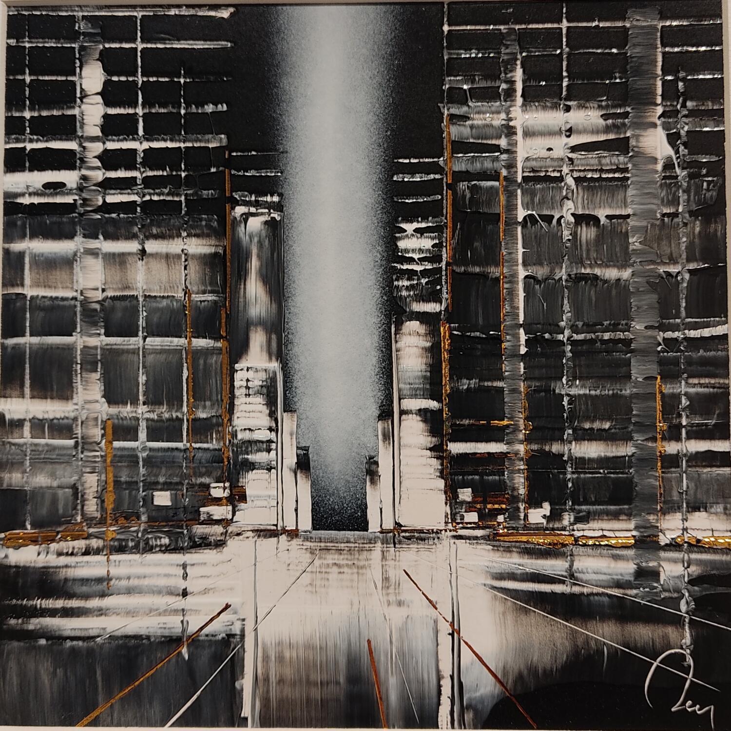 Although he has achromatopsia (absence of color vision), Julien Rey takes us on a journey through his paintings to urban landscapes. Julien Rey's story begins like all great stories: with an impossible dream. With achromatopsia, the artist sees only in black and white. Yet, this condition did not prevent him from traveling to the borders of Burma, from changing his life (he became a Buddhist monk there) or from embarking on art. From his trip to Burma, he brought back a perfect mastery of gold leaf, a characteristic element of his work. His technique based on lacquer worked with a knife and gold leaf inlays places light at the center of his works. Marked by Zen philosophy, he creates minimal compositions that appear as suspended moments, poetic pauses.