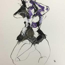 Yo was born and raised in the Paris region in a family where art and design were important. The stroke of a pen from her father fascinated her and drawing competitions were held regularly at home. Very soon she was acquainted with the human figure. Her father, passionate about the poster artists, illustrators and cartoonists of the twentieth century, transmitted this interest to her. After law school, she worked as a lawyer for ten years while attending workshops sponsored by the city of Paris. In 2001, she left her salaried work to attend the Versailles School of Fine Arts, where she was devoted entirely to her passion: live models. This form of expression fascinated her and allowed her to tell stories. The body is an anchor in her work. It is the singular envelope of emotions and moods. Yo combines her energy and that of her models, drawing with instinct and precision the movements and attitudes of the body.
