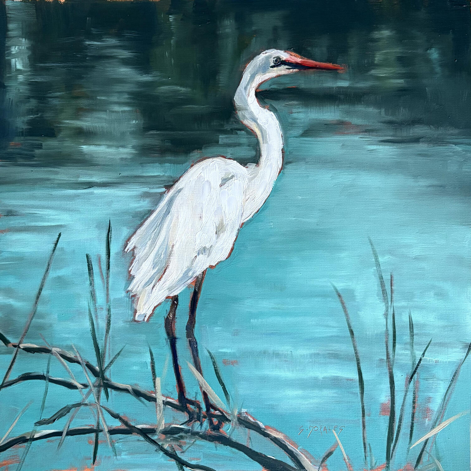 Painting Echassier by Morales Géraldine | Painting Figurative Animals Oil