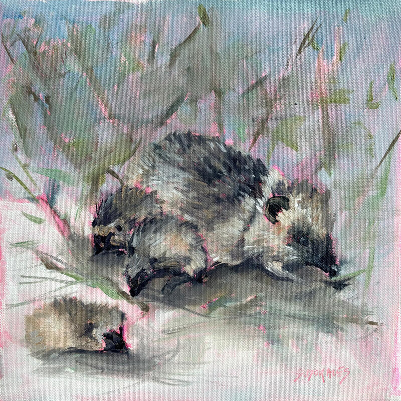 Painting Les Hérissons by Morales Géraldine | Painting Figurative Animals Oil