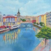 Originally from Ukraine, Yulia Kochevykh has a degree in decorative and applied arts, and has worked as a restorer at the Kyiv Museum. Now living in France, she devotes herself to plein-air painting, capturing the delicate beauty of the world around her. Each painting is a poetic evocation of a dream, often inspired by cities she has long imagined before visiting. Her approach is marked by gentleness, perseverance and light.