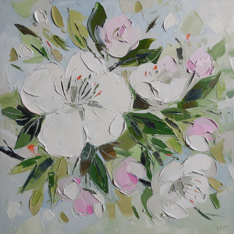 This unique and original contemporary artwork "Spring Apple Tree" has been created by the contemporary artist Lunetskaya Elena.