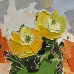 This unique and original contemporary artwork "Prickly Pear Flowers" on the subjects of Landscapes, Minimalist, Nature has been created by the contemporary artist Lunetskaya Elena.