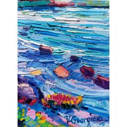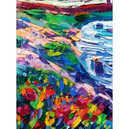 This unique and original contemporary artwork "Flowers on the coast" on the subject of Landscapes has been created by the contemporary artist Georgieva Vanya.