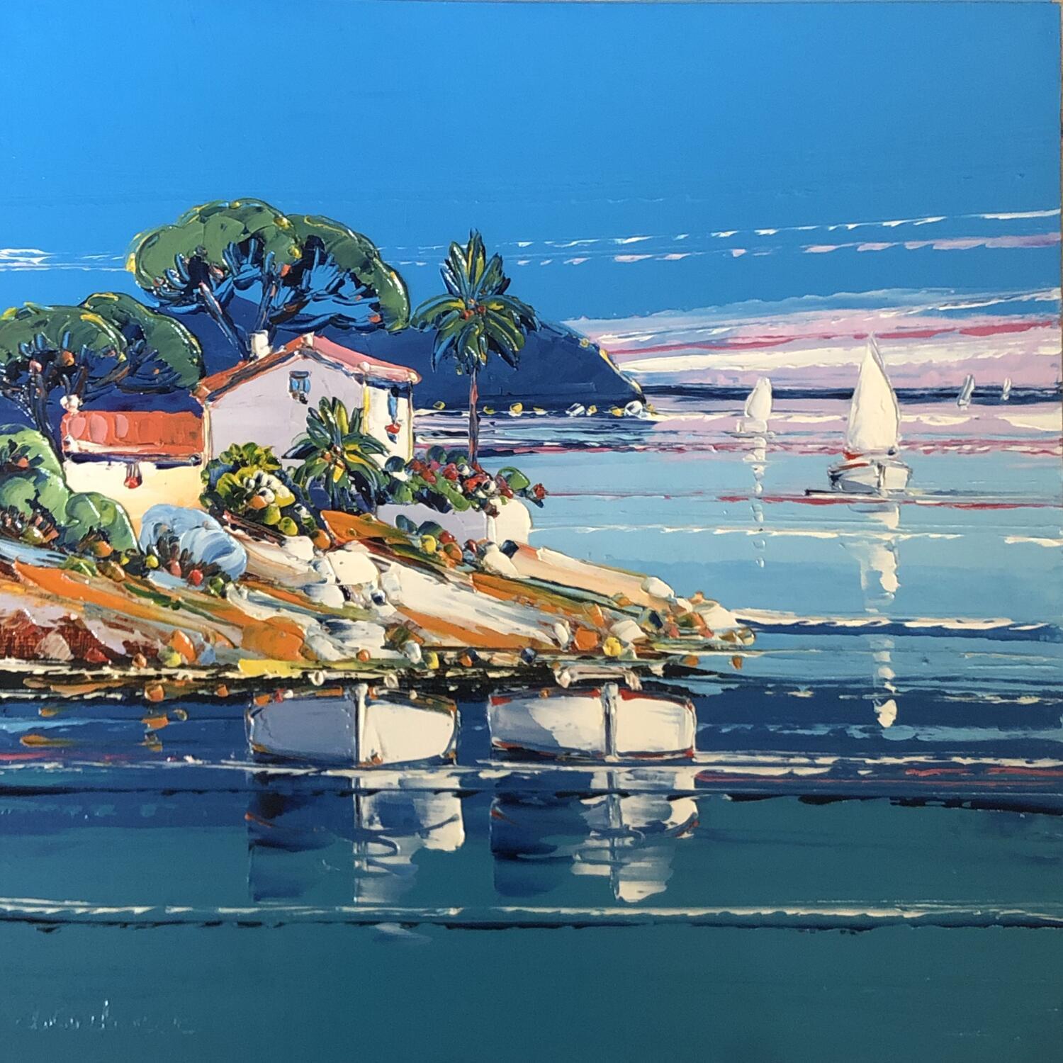 This unique and original contemporary artwork "Autour du Cap d'Antibes" on the subject of Landscapes has been created by the contemporary artist Corbière Liisa.