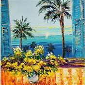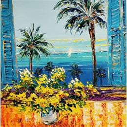 This unique and original contemporary artwork "Bouquet aux mimosas" on the subjects of Landscapes, Marine has been created by the contemporary artist Corbière Liisa.