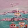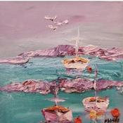 This unique and original contemporary artwork "Rochers violet" on the subject of Landscapes has been created by the contemporary artist Shahine.
